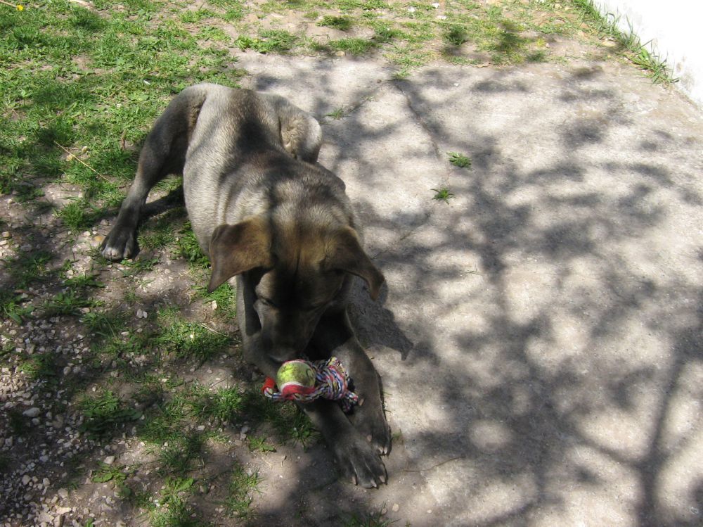 A kutyák labdázni is szeretnek. A teniszlabda az jól bírja a sok rágást. A kutyák futnak, rágnak és játszanak.